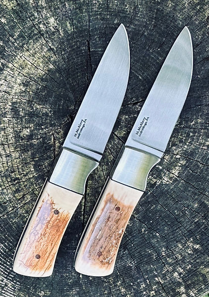 These are some examples of Every Day Carry knives I have made.   This style knife comes with either a leather pocket or belt carry sheath custom  fitted to the knife.